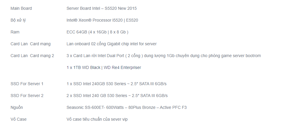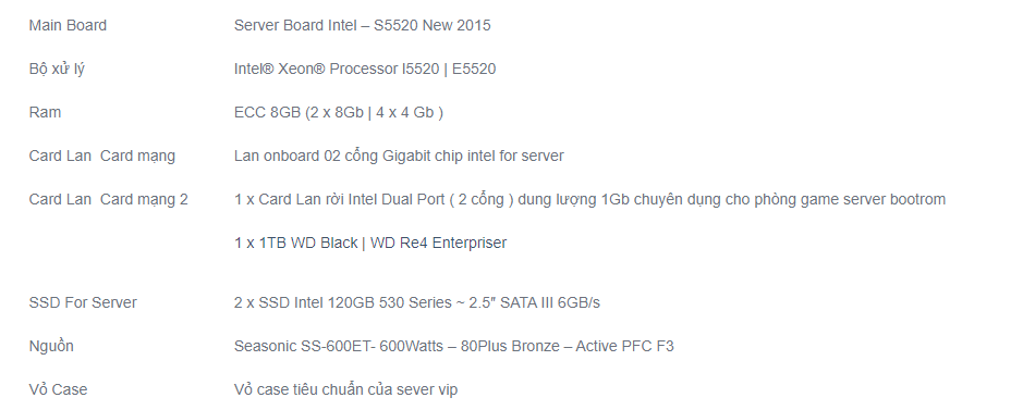 Để mua máy chủ cho quán net có quy mô khoảng 40-60 máy trạm, bạn nên đầu tư khoảng 21 triệu đồng và tham khảo lựa chọn loại cấu hình dưới đây: