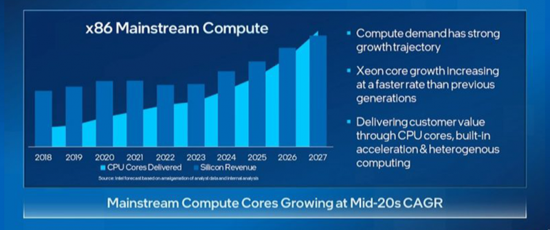 - Đợt cập nhật mới này, Intel không chỉ tập trung vào việc tăng số lõi trên mỗi socket, mà còn đang dự định tăng Average Selling Price (ASP) để thu hút giá trị từ việc có nhiều lõi hơn và từ danh mục sở hữu trí tuệ (IP) khác.