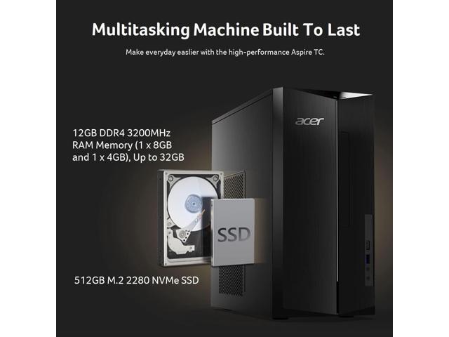 Acer Aspire TC-1760-UA92 Desktop | 12th Gen Intel Core i5-12400 6-Core Processor | 12GB 3200MHz DDR4 | 512GB NVMe M.2 SSD | 8X DVD | Intel Wireless Wi-Fi 6 AX201 | Bluetooth 5.2 | Windows 11 Home