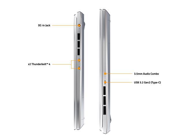 Transferring data and video display are all done in just one port. With two built-in Intel® Thunderbolt™ 4 achieves a transfer speed of up to 40Gbps and 8X faster than USB 3.1. Additionally, the reversible USB-C transfer port interface can output up to two 4K screens. One of them can also be used for PD charging, breaking all boundaries for your endless creativity.