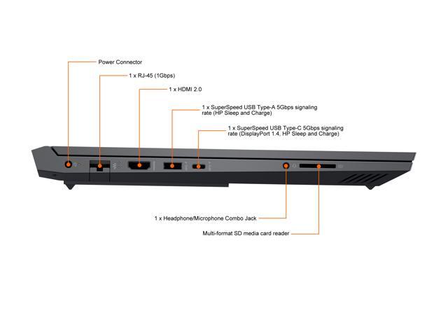 | USB USB | 1 x SuperSpeed USB Type-C 5Gbps signaling rate (DisplayPort 1.4, HP Sleep and Charge) 1 x SuperSpeed USB Type-A 5Gbps signaling rate (HP Sleep and Charge) 2 x SuperSpeed USB Type-A 5Gbps signaling rate |
