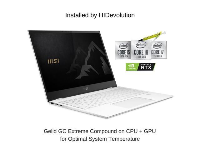 Intel® 11th Generation Tiger Lake i7-1185G7 4 Core – 8 Thread Processor, 1.2 GHz (Max Turbo Frequency 4.8 GHz), 12 MB Smart Cache with Intel® Iris® Xe GraphicsHIDevolution upgrades the 13.4″ FHD+ IPS-Level, 100% sRGB, Touch Screen [Support MSI Active Pen (MPP2.0)] Display Gaming Laptop by adding Gelid GC Extreme on CPU and GPU for improved performance and optimal system temperaturePCIe based storage–512 GB M.2 PCIe 3.0 x4 NVMe SSD–ensures that you experience the fastest boot up & load times16 GB (1 x 16 GB On-Board with Dual Channel Design) of fast LPDDR4X-4267 memory–run memory hungry applications and multitask with easeHIDevolution Promise: Authorized MSI Build to Order Dealer, thorough quality testing, a 1 Year Warranty, and access to our expert support staff. Contact us for more customization options. Free Windows 11 Upgrade eligible device.