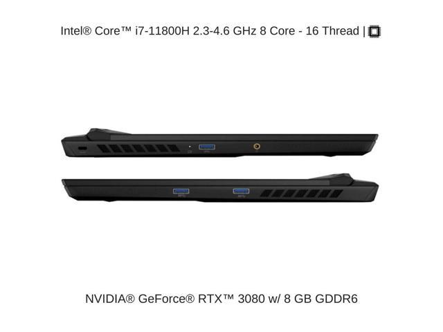 Intel® Core 11th Generation Tiger Lake i7-11800H 8 Core – 16 Thread Processor, 2.3-4.6 GHz, 24 MB with NVIDIA® GeForce® RTX 3080 w/ 8 GB GDDR6 (Max TGP 130W – Boost Clock 1635MHz)HIDevolution upgrades the 15.6″ FHD (1920 x 1080) 144Hz IPS-Level Display Gaming Laptop by adding Gelid GC Extreme on CPU and GPU for improved performance and optimal system temperatureHIDevolution installed PCIe based storage–2 TB M.2 PCIe 3.0 NVMe SSD–ensures that you experience the fastest boot up & load timesInstalled by HIDevolution–32 GB (2 x 16 GB) of fast DDR4 3200MHz dual channel system memory (Speeds subject to system capability)–run memory hungry applications and multitask with easeHIDevolution Promise: Authorized MSI Build to Order Dealer, thorough quality testing, a 1 Year Warranty, and access to our expert support staff. Contact us for more customization options. Free Windows 11 Upgrade eligible device.