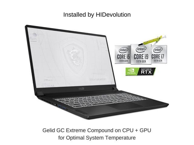 Intel® Core™ 11th Generation Tiger Lake i9-11900H 8 Core – 16 Thread Processor, 2.5 GHz (Max Turbo Frequency 4.9 GHz), 24 MB Smart Cache with NVIDIA® Quadro® RTX™ A3000 w/ 6 GB GDDR6HIDevolution upgrades the 17.3″ Thin Bezel FHD (1920 x 1080) 144Hz IPS-Level, Close to 100% sRGB Display Mobile Workstation by adding Gelid GC Extreme on CPU and GPU for improved performance and optimal system temperaturePCIe based storage–1 TB M.2 PCIe 3.0 x4 NVMe SSD–ensures that you experience the fastest boot up & load timesInstalled by HIDevolution–64 GB (2 x 32 GB) of fast DDR4 3200MHz dual channel system memory (Speeds subject to system capability)–run memory hungry applications and multitask with easeHIDevolution Promise: Authorized MSI Build to Order Dealer, thorough quality testing, a 3 Year Warranty, and access to our expert support staff. Contact us for more customization options. Free Windows 11 Upgrade eligible device.