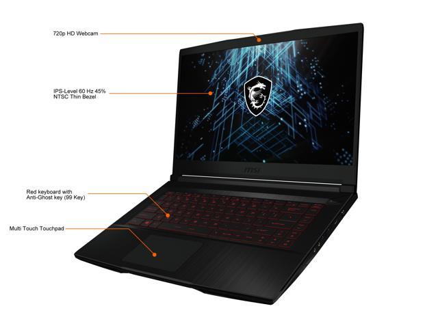 MSI GF Series - 15.6" 60 Hz IPS - Intel Core i7 11th Gen 11800H (2.30GHz) - NVIDIA GeForce GTX 1650 Max-Q - 8 GB DDR4 - 512 GB NVMe SSD - Windows 11 Home 64-bit - Gaming Laptop (GF63 Thin 11SC-224 )