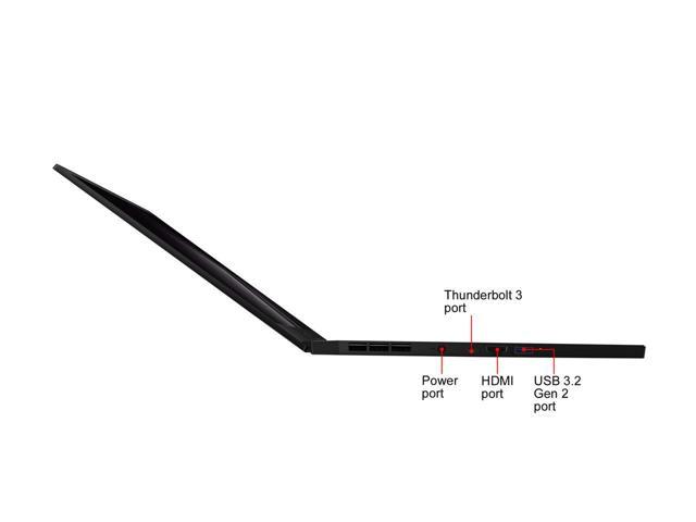 GeForce RTX 2060 6 GB GDDR6Intel Core i7 10th Gen 10750H (2.60 GHz)16 GB Memory 512 GB NVMe SSD15.6″ 1920 x 1080 Anti-Glare Wide View Angle 240 Hz 3 ms14.17″ x 9.65″ x 0.71″ 4.63 lbs.1 x Thunderbolt 3 1 x HDMI (4K @ 60Hz)1 x USB 3.2 Type-C3 x USB 3.2 Gen 2