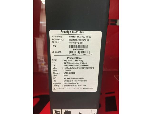 MSI Laptop Prestige 15 A10SC-021 Intel Core i7 10th Gen 10710U (1.10 GHz) 16 GB Memory 1TB NVMe SSD NVIDIA GeForce GTX 1650 14" Windows 10 Pro 64-bit