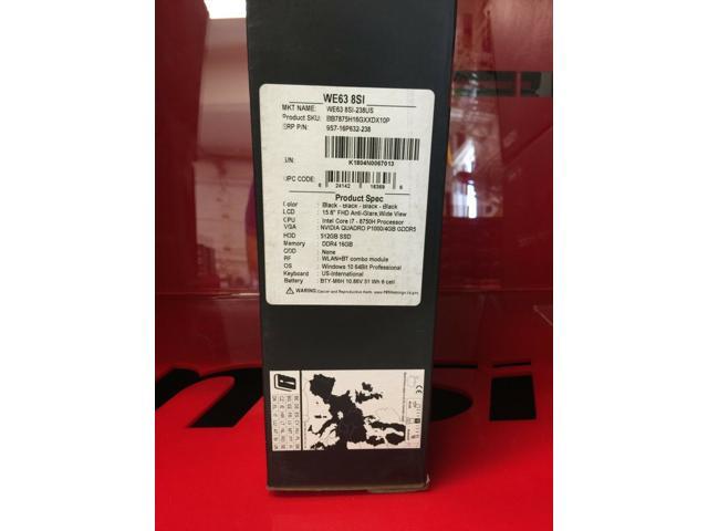 MSI WE Series WE63 8SI-238 Mobile Workstation Intel Core i7 8th Gen 8750H (2.20 GHz) 16 GB Memory 512 GB SSD NVIDIA Quadro P1000 15.6" Windows 10 Pro 64-Bit