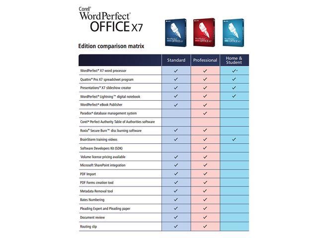 More valueCreate documents, spreadsheets, presentations, and more with WordPerfect Office X7 Professional Edition. This complete professional office suite includes all the productivity software you need plus built-in PDF tools, the Paradox management system, an eBook Publisher, and even more free applications and extras to enhance your office suite experience.| Brand | Corel |