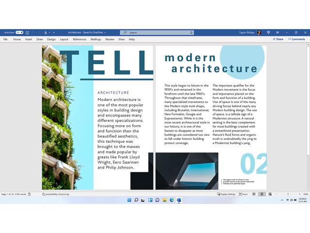 Move your business forward with Office Home & Business 2021. Easily share files and get notified when others make edits or mention you in comments and quickly catch up on what’s changed every time you open a document1. Improved performance features help your system run faster and new auto save1 means you’ll never lose your work again.