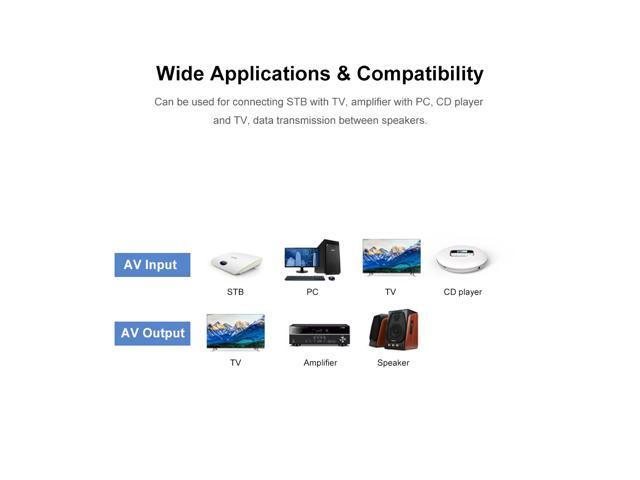 Features: High-speed Transmission Pure Sound Quality Enjoy movies at home with 3.5 mm RCA Audio Video Cable. Easy Simple Connection Plug the single one into STB and plug 3 ones into TV. Wide Applications Compatibility Can be used for connecting STB with TV, amplifier with PC, CD player and TV, data transmission between speakers. Injection Molding Stable Head Fully protect PCA terminal and not easy be out of shape. Soft Wire Environment Friendly Made of PVC material and durable in use.