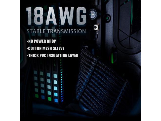 1.1×24 Pin ATX Extension Cable, 1x(4+4)Pin EPS Cable,2×8 Pin PCI-e Cable,2×6 Pin PCI-e Cable2.TRIPLE layer cable weaving design with 18AWG wire,pass test Mechanics3.Clean cable management and a uniform design4.Customization Length and Color