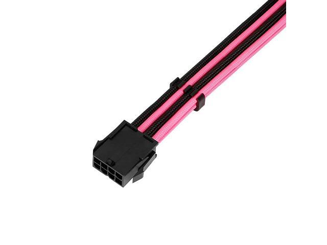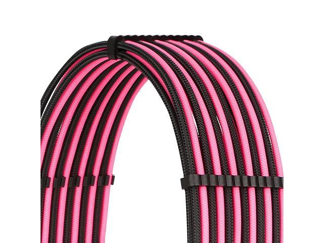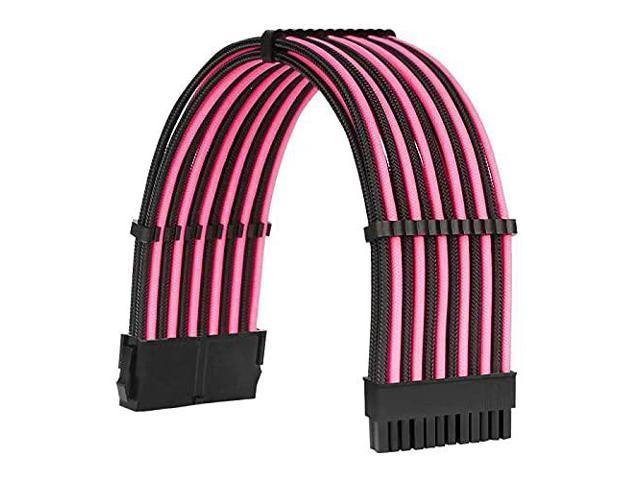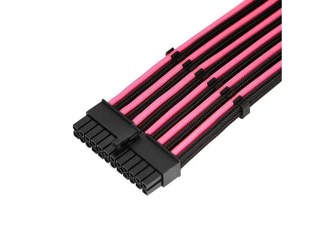 WHBHL Sleeved Cables PSU Extension Kit 18AWG 30cm ATX 24-pin CPU4+4-pin PCI-E 6+2-pin with Combs for PSU to MotherboardGPU (Pink Black)