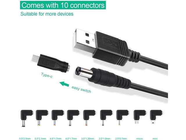 Universal USB to DC 5.5×2.1mm Plug Power Charging Cable with 10 Connectors for Router, Mini Fan, Speaker, Camera, Smart Phone