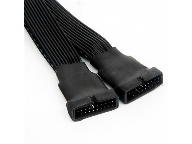 USB 3.0 Header Extension Cable for Motherboards. 1 to 2 Y Splitter design. Connector 1: Double USB 3.0 19/20 pin male; Connector 2: USB 3.0 19/20 pin female. (Note: cannot compatible Cor.iCUE 7000X)USB 3.0 19/20 pin internal extension adapter supports data transmission speeds of up to 5Gbps, high performance, used for stable signal and data transmission.4.7 inch USB3.0 is full duplex, independent of the four differential signal USB 3.0 signals, supports simultaneous bi-directional data transfer.Black flat ribbon wire, much more durable and flexible comparing to individual crimped wires; These cables offer a clean look, making it easier to deal with dust and avoid overheatingNote: The end that connects to the motherboard is loose for a few of motherboards since the USB 3.0 ports on different motherboards have a bit difference. There is not USB 3.0 connector to work with all of motherboards currently,if you have any doubts, please feel free to contact us .