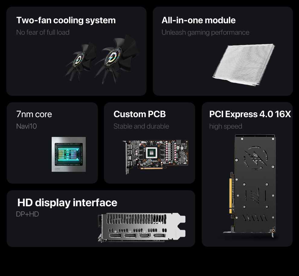 8GB 256-Bit GDDR6Core Clock 1670 MHzBoost Clock 1925 MHz1 x HDMI 3 x DisplayPort 1.42560 Stream ProcessorsPCI Express 4.0 x16