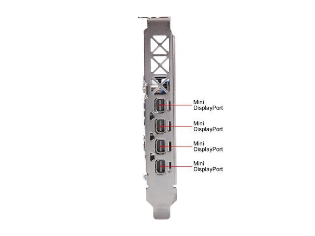 Pros: Fully PCIe powered, small size, includes two mini display port to display port adapters