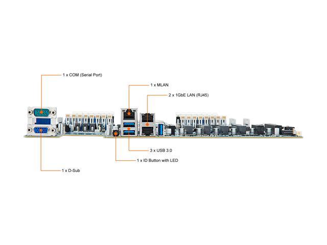 | Back I/O Ports | 1 x COM (Serial Port) / 1 x D-Sub / 1 x MLAN / 2 x LAN (RJ45) / 3 x USB 3.0 |