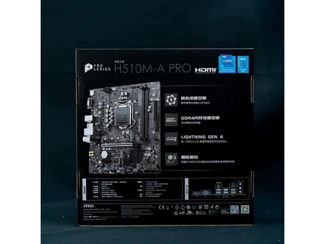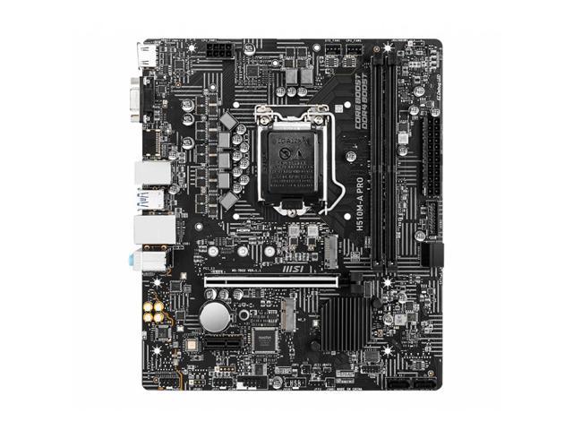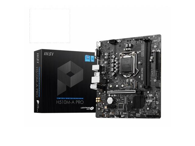 Supports 10th Gen Intel® Core Processors, 11th Gen Intel® Core Processors, Pentium® Gold and Celeron® ProcessorsIntel® H510 Chipset4x SATA 6Gb/s ports (From H510 Chipset) 1x M.2 slot (Key M)7.1-Channel High Definition AudiomATX Form Factor 9.29 x 7.95 in. (23.6 cm x 20.2 cm)