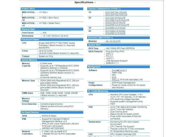 Packageinclude: 1x Supermicro H11SSL-i mainboard 1x AMD EPYC 7401P CPU 4x Samsung 32GB 2133P DDR4