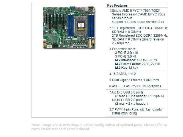 ECCRAMShipment: FedEx international express shipping. The revision of the motherboard is REV 2.0. Specifications # of CPU Cores 24 # of Threads 48 Base Clock 2.0GH z Max Boost Clock Up to 3.0GH z All Core Boost Speed 2.8GH z Total L3 Cache 64MB Package SP3 Socket Count 1P PCI Express® Version PCIe 3.0 x128 Default TDP / TDP 155/170W System Memory System Memory Specification 2400MHz/2666MHz System Memory Type DDR4 Memory Channels 8 Per Socket Mem BW 153.6 GB/s/ 170.6 GB/s Key Features Workload Affinity ERM/SCM/CRM apps Value data mgmt (NR/RDBMS) VDI VM Density Foundation Product Family AMD EPYC Product Line AMD EPYC 7001 Series Platform Server OPN Tray PS740PBEVHCAF OPN PIB PS740PBEAFWOF