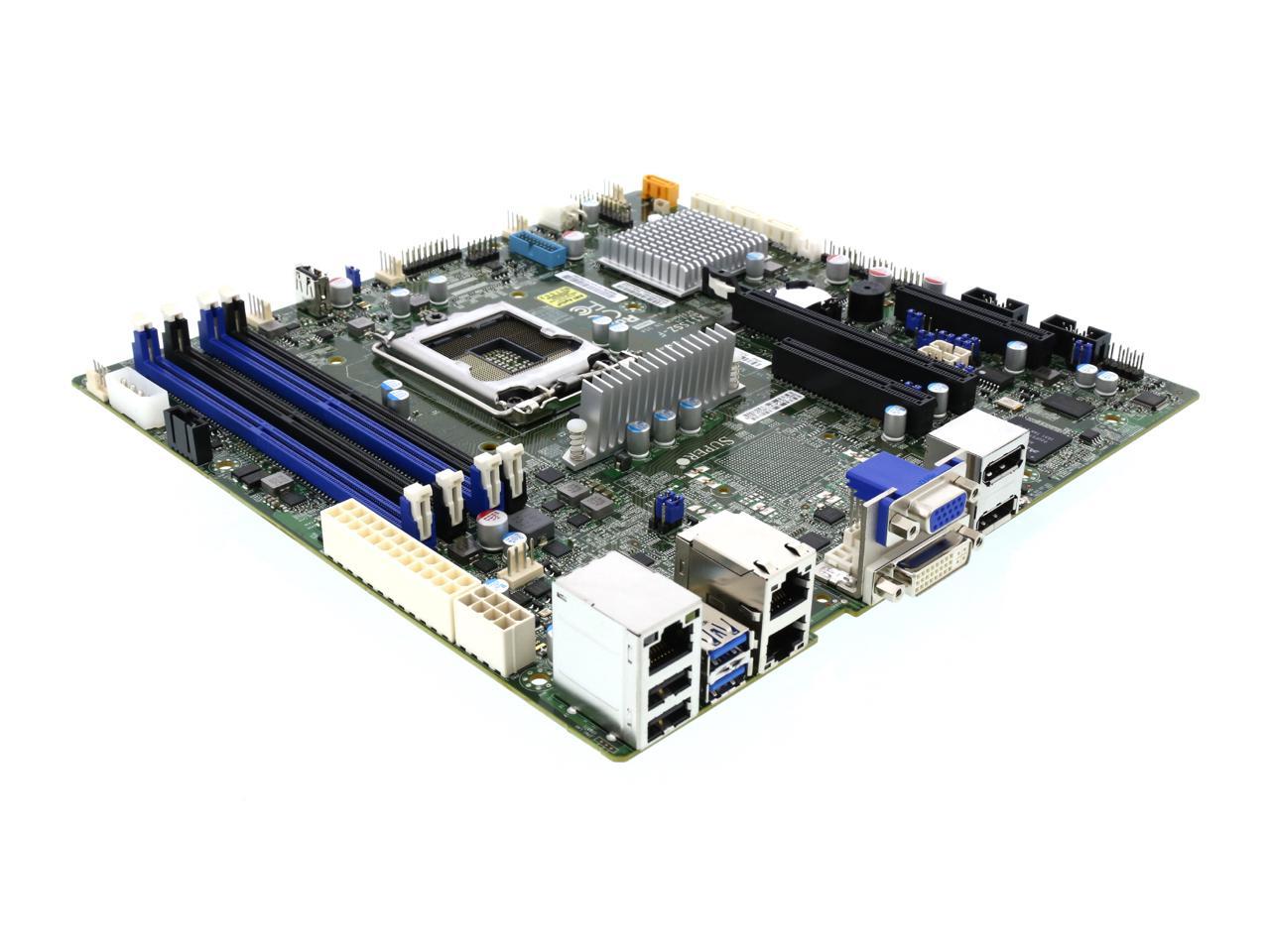 Intel C236 chipset Up to 64GB DDR4 2133 MHz ECC / non-ECC Unbuffered UDIMM; 4 x DIMM slots Expansion slots:1 PCI-E 3.0 x16 (in x16), 2 PCI-E 3.0 x4 (in x8) 1 GbE LAN with Intel i210-AT, 1 GbE LAN with Intel PHY i219LM 4 x SATA3 (6Gbps) via C236; RAID 0, 1, 5, 10 2 x DP, 1 DVI-I, 3 x independent displays via Intel HD Graphics, VGA port for BMC I/O: 1 x SATA DOM, 2 x COM, TPM 1.2 header, ALC 888S HD Audio 4 x USB 3.0 (2 rear + 2 via header) 9 x USB 2.0 (2 rear + 6 via headers + 1 Type A) Support 12V DC power AMT 11.0 |