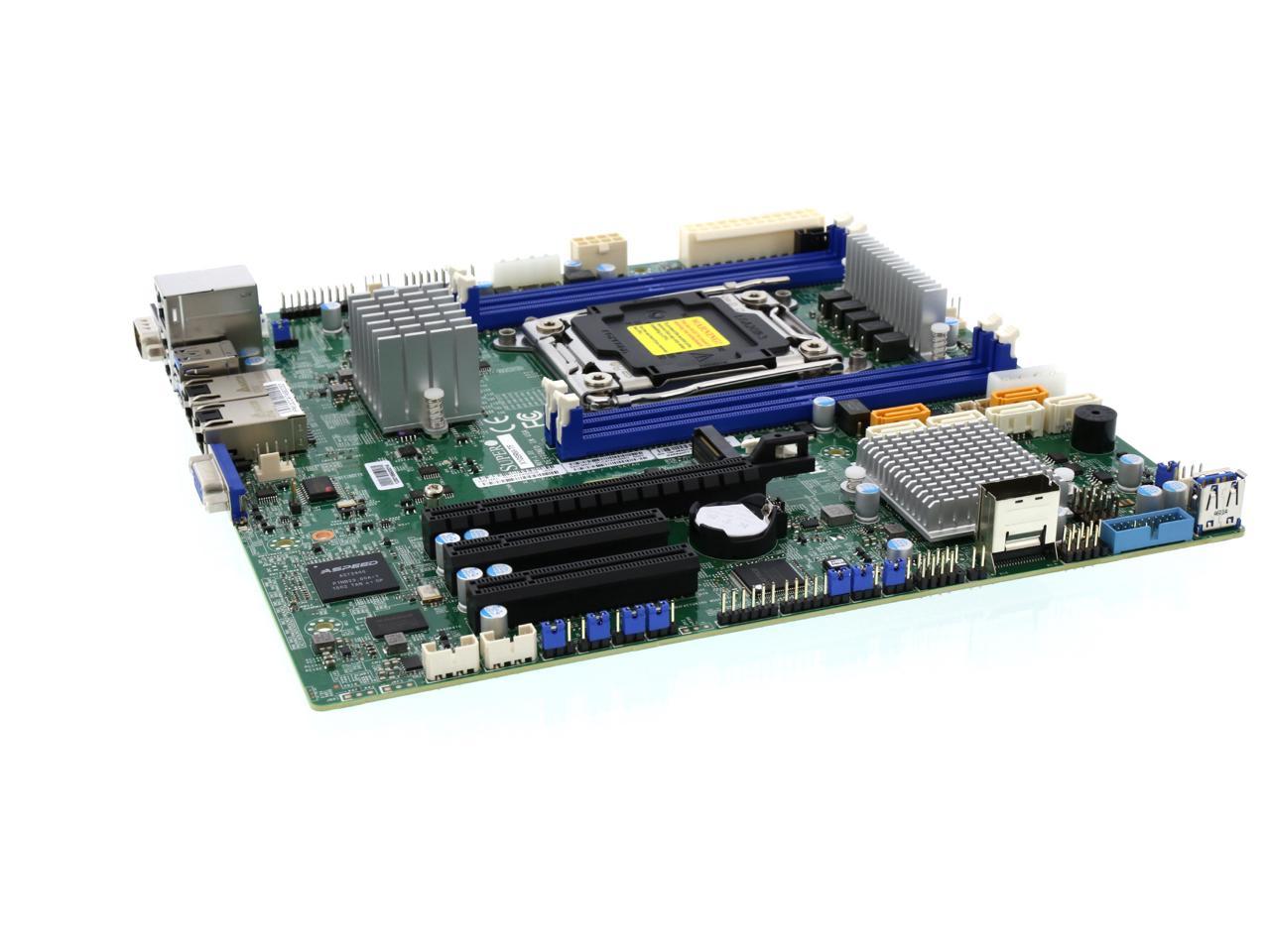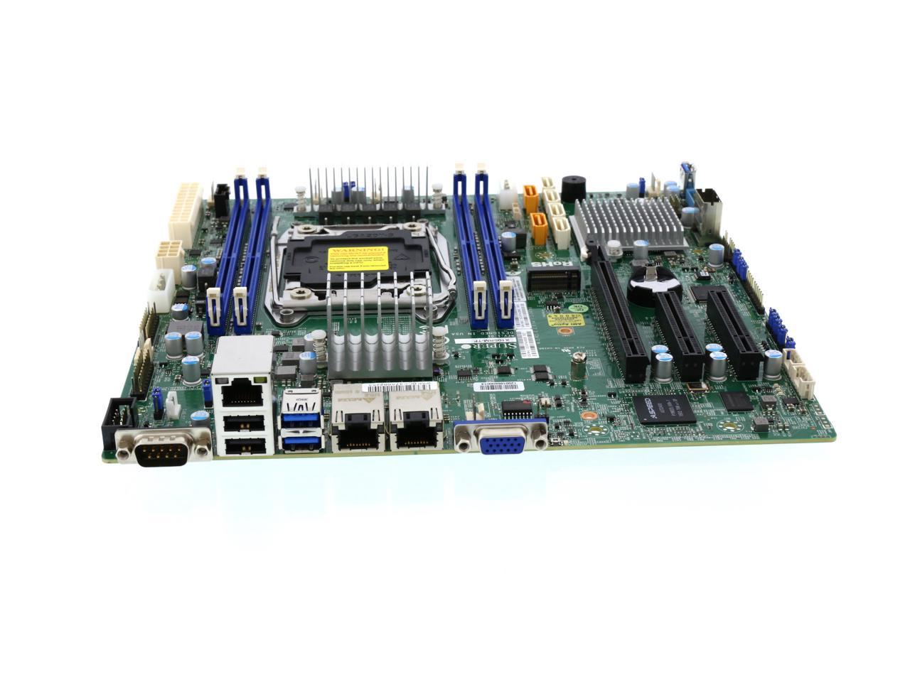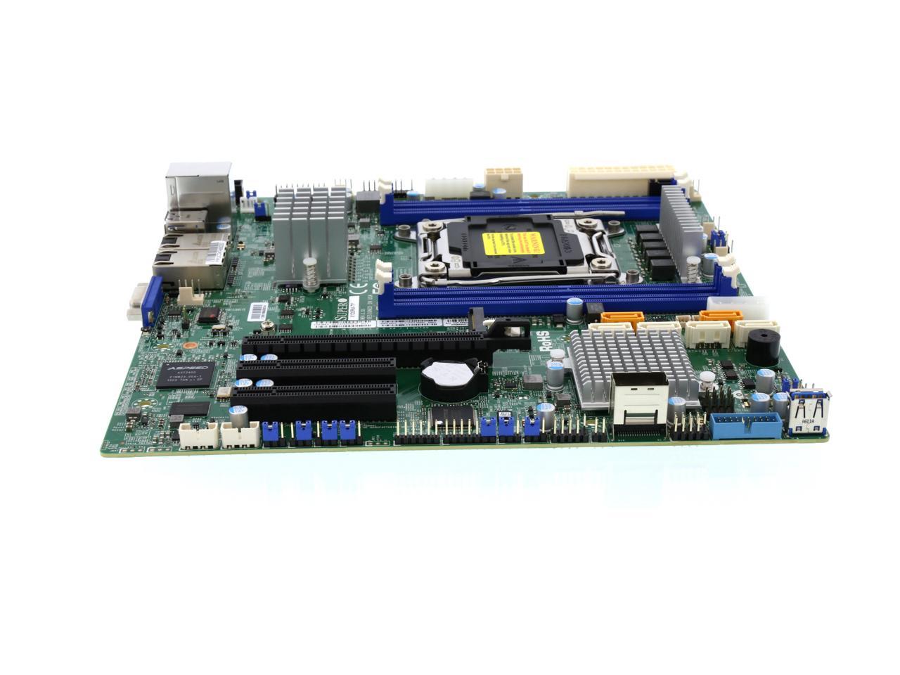 Intel C612 chipset Up to 512GB ECC 3DS LRDIMM, up to DDR4 – 2400 MHz; 4 x DIMM slots 1 x PCI-E 3.0 x16, 2 x PCI-E 3.0 x8 Intel X550 Dual 10GBase-T LAN ports 10 x SATA3 (6Gbps) via C612 1 x VGA, 2 x COM, 1 x TPM 5 x USB 3.0 ports, 6 x USB 2.0 ports 2 x SuperDOM with built-in power |