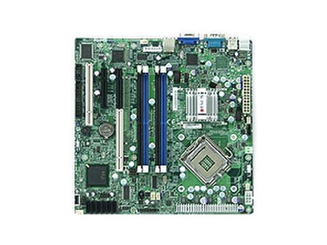 Chipset: Intel 3200 & ICH9R Memory: 4x 240pin DDR2-800/667 DIMMs, Dual Channel, ECC/non-ECC Unbuffered, Max Capacity 8GB Slots: 1x PCI-Express x8 Slot; 1x PCI-Express x8 Slot (Run on x4); 2x 32-bit 33MHz PCI Slots SATA: 6x SATA2 Ports, Support RAID 0, 1, 5, 10 Video: XGI Volari Z9S Graphics Controller w/ 32MB Video Memory Ports: 7x USB 2.0 Ports (2 rear, 4 by headers, 1 on-board); 2x PS/2 Ports; 2x Serial Ports (1 rear, 1 by header); 1x VGA Port; 2x RJ45 LAN Ports