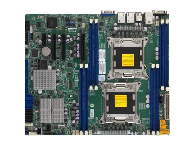 SpecificationsMfr Part Number: X9DRL-EF-OCPU: Dual LGA2011Support Intel Xeon E5-2600 ProcessorsCache up to 20MBQPI up to 8 GT/sSupport up to 130W TDPChipset: Intel C602JMemory: 8x 240pin DDR3-1600/ 1333/ 1066/ 800 DIMM Slots, Supports up to 256GB ECC/REG Memory or up to 64GB ECC/Non-ECC Unbuffered MemorySlots: 2x PCI-Express 3.0 x8 Slots, 1x PCI-Express 2.0 x8 Slot (runs at x4), 1x PCI-Express 2.0 x1 SlotSATA: 2x SATA3 Ports, Support RAID 0, 1, 10; 4x SATA2 Ports, Support RAID 0, 1, 5, 10Video: Matrox G200eW GraphicsLAN: Intel i210 Gigabit Ethernet Controller; 1x Realtek RTL8201N PHY (dedicated IPMI)Ports: 7x USB 2.0 Ports (4 rear, 2 via header, 1 Type A), 1x VGA Port, 2x Serial Ports (1 rear, 1 via header), 2x RJ45 LAN Ports, 1x RJ45 Dedicated IPMI LAN PortForm Factor: ATX, 12.0 x 10.0 inch / 30.48 x 25.40 cmRoHS Compliant