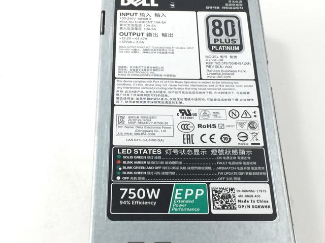 General InformationManufacturer: Dell TechnologiesManufacturer Part Number: G6W6KManufacturer Website Address: http://www.delltechnologies.comBrand Name: DellProduct Name: Delta 750W PSUProduct Type: Power SupplyPhysical CharacteristicsForm Factor: Hot-swappableMiscellaneousCompatibility: Dell PowerEdge Rack Servers: R630 R730 R730xd