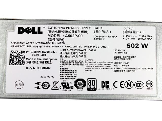 General InformationManufacturer: Dell-IMSourcing DSManufacturer Part Number: J38MNManufacturer Website Address: http://www.imsourcing.comBrand Name: Dell-IMSourcing DSProduct Name: Power ModuleProduct Type: Power ModulePower DescriptionOutput Power: 502 W