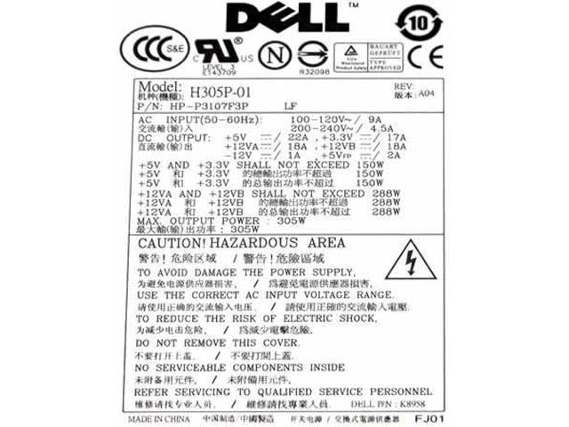 – Dell K8958 Poweredge Sc 430 Sc440 305W Power Supply H305p-01