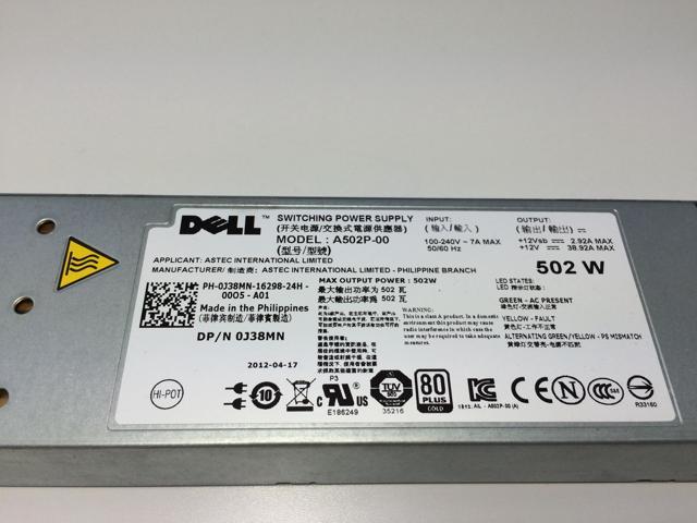 System Compatibility: Dell PowerEdge R610Power: 502WPart Number: 0J38MN