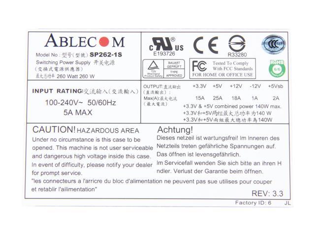 Part Number : Pws-0055Manufacturer: AcbelWattage : 260 WattType : Server Power Supply