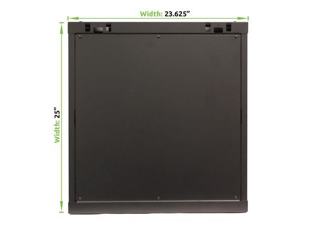 Dimensions: 25″H x 24″W x 18″D130 pound weight capacitySturdy welded frame structureRails with cage nut style boltingFits Standard 19″ rack-mount equipment