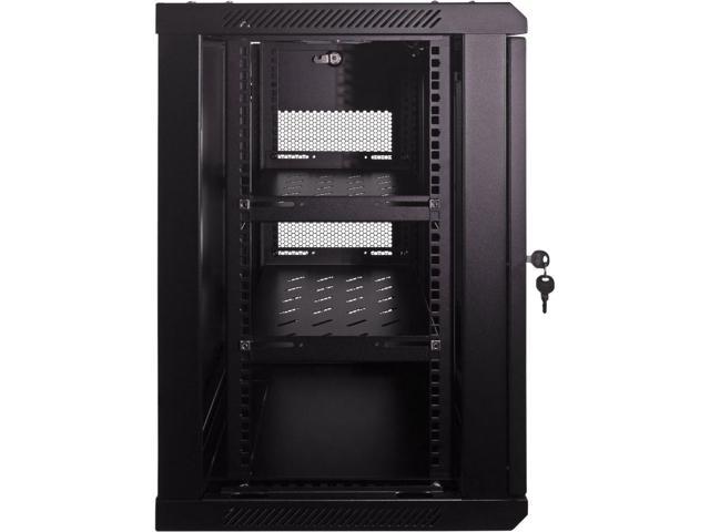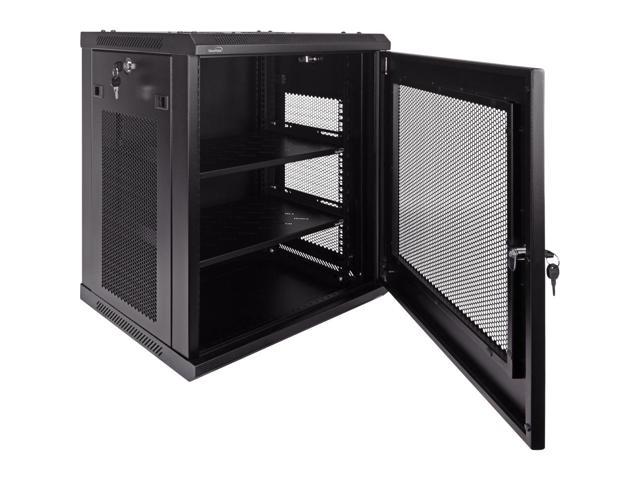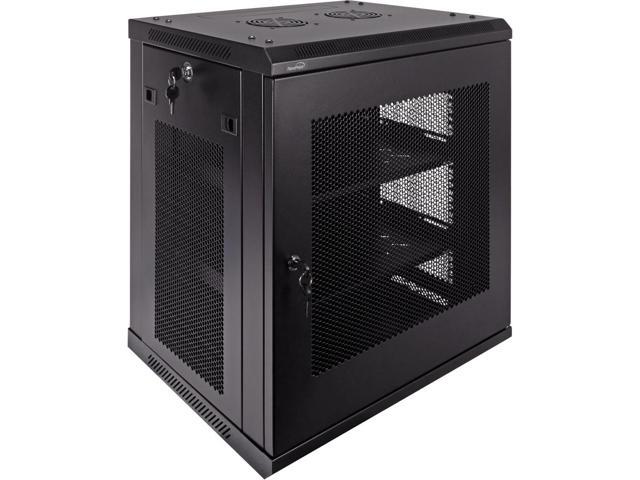 This 450mm depth cabinet by NavePoint is part of the Pro Series and can be wall-mounted or self standing and is great for organizing your networking equipment. It has removable, locking side panels for easy access, along with venting slots and (2) built-in fans to keep your equipment cool. Comes with (2) component shelves. Made of high-quality SPCC Cold Rolled Steel with electro-static powdered coated finish. Comes flat-packed and requires some assembly. Available in 6U, 9U, 12U, 15U and 18U configurations.