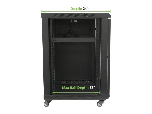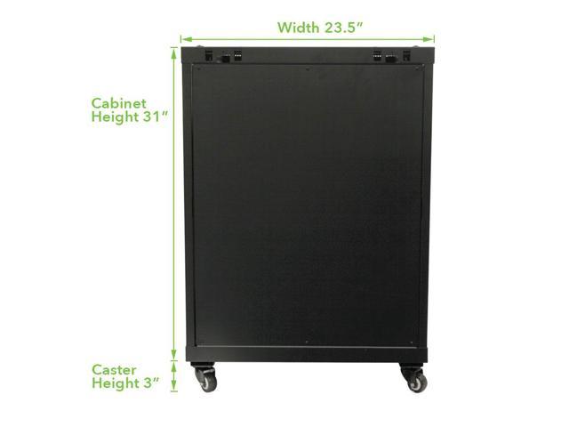This 600mm depth cabinet by NavePoint is part of the Performance Series and can be wall-mounted or self standing (Casters included) and is great for organizing your networking equipment. It has removable, locking side panels for easy access, an L-shaped spring pin for fast door opening direction changes, and (2) built-in fans to keep your equipment cool. Comes with (3) component shelves. Made of high-quality SPCC Cold Rolled Steel. Comes flat-packed and requires some assembly.