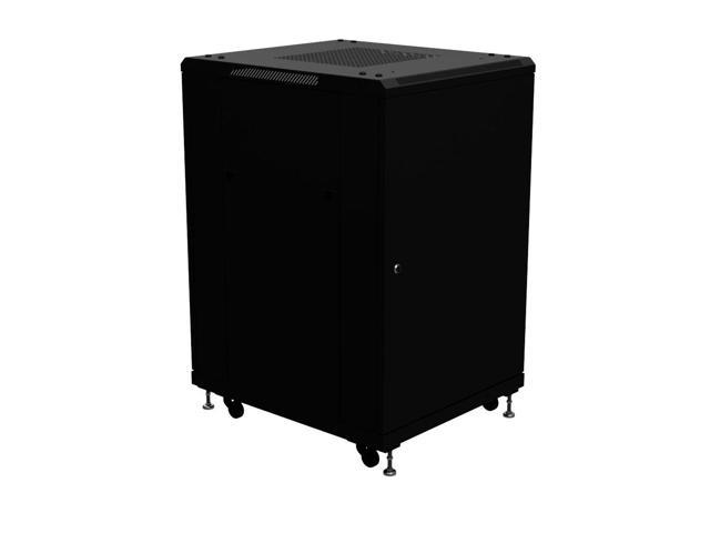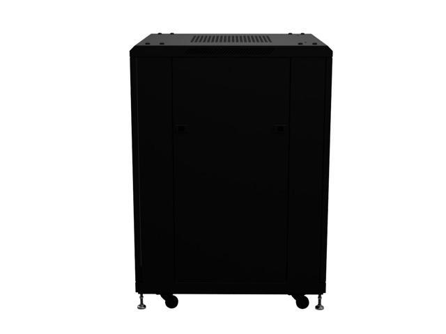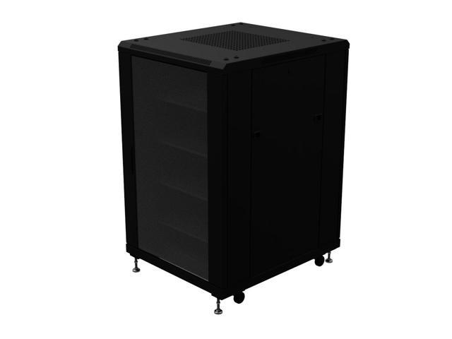 SLEEK DESIGN: Tempered glass, reversible doors give a professional look and easy access while allowing you to readily monitor indicatorsSTRONG CONSTRUCTION: The sturdy welded frame is made of heavy-duty 14 gauge cold-rolled steel for durabilityCONVENIENT ACCESS: Quick-release back and side panels for easy rear cable accessADJUSTABLE DEPTH: This AV rack cabinet internal mounting rails are adjustable in depth that helps to handle a full-size serverEASY INSTALLATION: Comes pre-assembled with 4 shelves with a load capacity rating of 44 pounds each for fast and simple installation