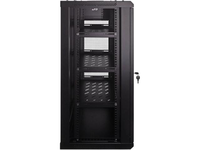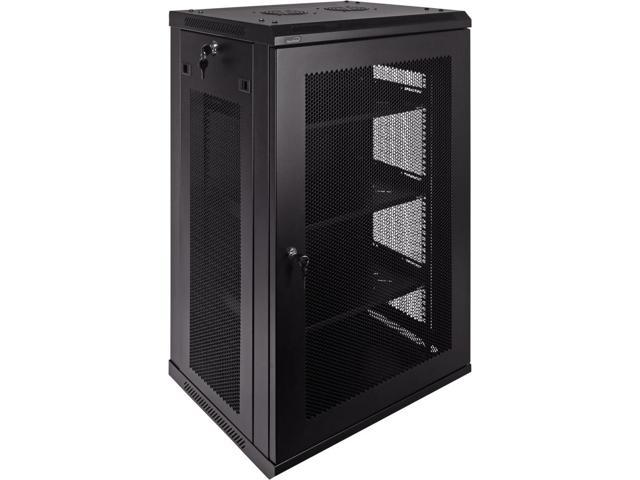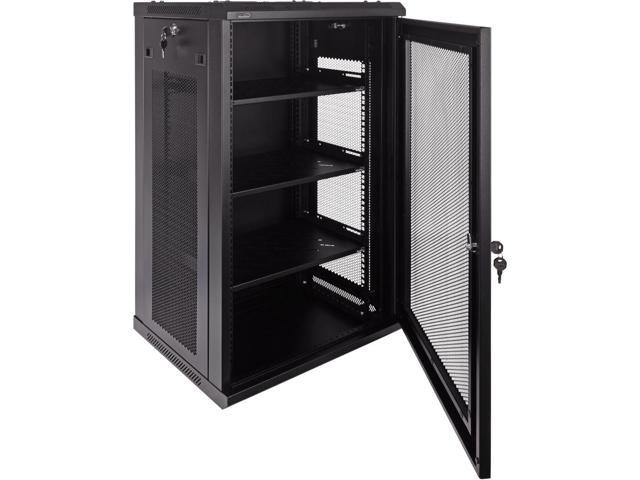 This 450mm depth cabinet by NavePoint is part of the Pro Series and can be wall-mounted or self standing and is great for organizing your networking equipment. It has removable, locking side panels for easy access, along with venting slots and (2) built-in fans to keep your equipment cool. Comes with (3) component shelves. Made of high-quality SPCC Cold Rolled Steel with electro-static powdered coated finish. Comes flat-packed and requires some assembly. Available in 6U, 9U, 12U, 15U and 18U configurations.