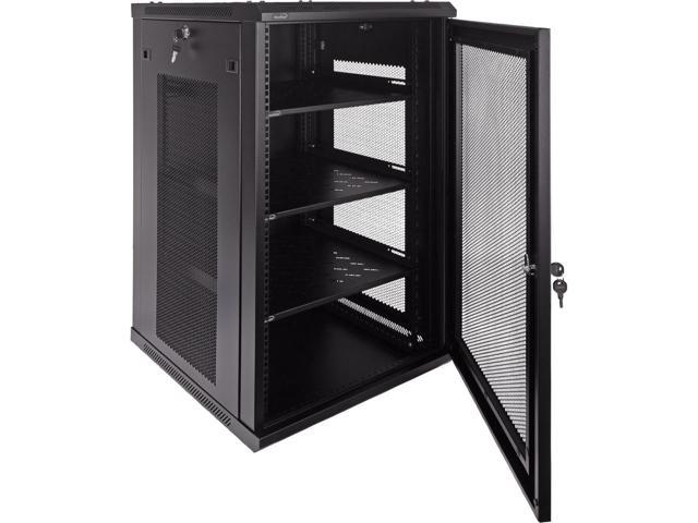 This 600mm depth cabinet by NavePoint is part of the Pro Series and can be wall-mounted or self standing and is great for organizing your networking equipment. It has removable, locking side panels for easy access, along with venting slots and (2) built-in fans to keep your equipment cool. Comes with (3) component shelves. Made of high-quality SPCC Cold Rolled Steel with electro-static powdered coated finish. Comes flat-packed and requires some assembly. Available in 6U, 9U, 12U, 15U and 18U configurations.