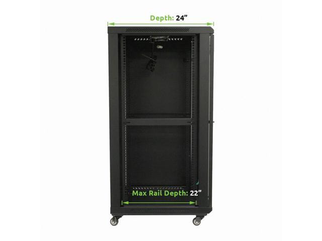 Dimensions: 43″H x 23.63″W x 23.63″D130 pound weight capacitySturdy welded frame structureRails with cage nut style boltingFits Standard 19″ rack-mount equipment