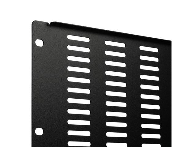 The filler panel can be easily and quickly installed horizontally on most 19-inch server racks, enclosures and cabinets with the included hardware. The vented panel conceals unused rack spaces and visible cables for a cleaner and more organized appearance. Constructed of heavy-duty cold rolled steel in a black powder coated finish for lasting durability. Available in a variety of sizes.