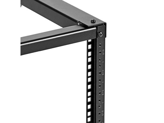 When assembling the open frame rack, the mounting rails are reversible, providing pre-tapped 12-24 threaded holes on one side and square rack holes on the other, to support essentially any rack-mounted equipment. Rack-mount spaces are clearly marked and numbered.