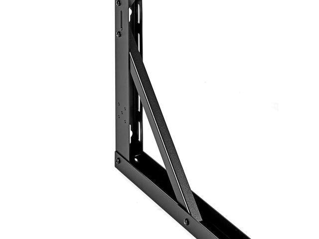The network rack is constructed of heavy duty cold rolled steel with double reinforced wall-anchor mounting holes to achieve the highest load capacity on wood studs to support heavy A/V equipment, such as amplifiers. The rack has a traditional black powder coated finish.
