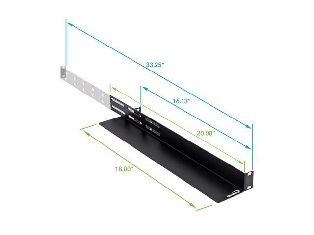 Dimensions: 1.88″H x 2.75″W x 20.13″D110 lbs weight capacityDepth adjustable to 33.25″ deepNon-ventedNo LipColor: BlackIncludes: 8 10-32 Screws per shelf, 8 12-24 Screws per shelf