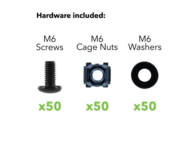 NavePoint M6 Cage Nuts & Screws for Server Shelves Cabinets - 50 Pk Rack Mount