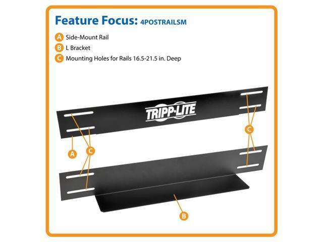 | Features | Extra Support for Heavy UPS Systems Installs on outside edges of rack’s vertical mounting rails Compatible with EIA-standard 4-post racks with mounting depths of 16.5-21.5 in. Leaves front and rear mounting holes free for equipment Supports up to 250 lbs. Also supports other heavy networking or power protection equipment 17.5 in. wide Rack-attachment hardware for square-hole mounting included |