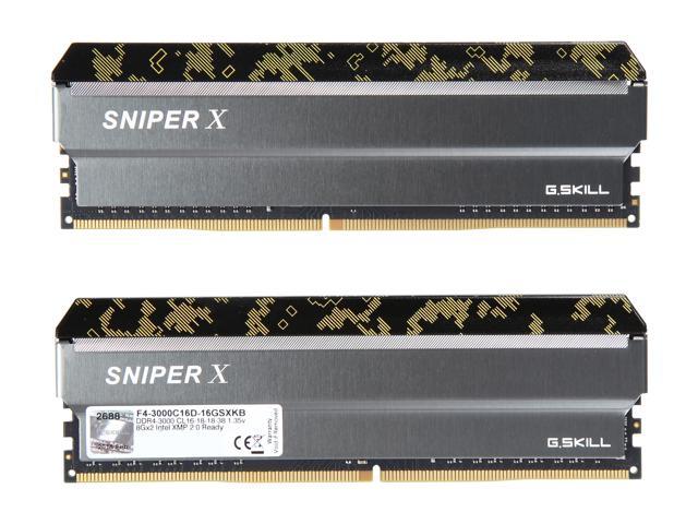 G.SKILL Sniper X series is the latest DDR4 memory engineered for the ultimate gaming experience, with enhanced memory performance for smoother gameplay and faster load times. Uniquely designed with a camouflage pattern and sleek minimalistic heatspreaders in multiple color variations to match your system color scheme, this memory kit is the ideal choice for a customized gaming build or for a high performance upgrade.