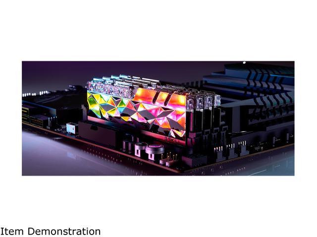 A great blend of performance and aesthetics. The Trident Z Royal Elite is striking in any angle, featuring a meticulously sculpted crystalline pattern across the polished surface of the aluminum heat spreader, a patented full-length crystalline light bar, and customizable 8-zone RGB lighting. Customize the lighting with G.Skill software, or sync it with other parts using motherboard lighting software. The Trident Z Royal Elite also strikes performance and reliability into your high-end build, thanks to top-selected memory ICs, 10-layer PCB and endless compatibility test on both Intel and AMD platforms.