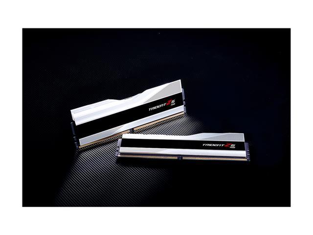 Trident Z5 RGB series DDR5 memory is designed for ultra-high performance on DDR5 platforms. Featuring a sleek and streamlined aluminum heatspreader design, available in metallic silver or matte black, the Trident Z5 RGB series DDR5 DRAM memory is the ideal choice to build a high-performance system.